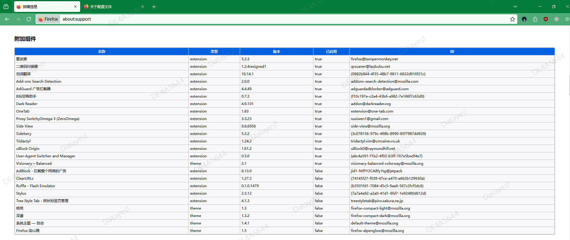 具体来说,还是先查看插件。地址栏输入about:support,可以看到配置文件夹目录,打开它,里面有个extensions目录存放插件文件。