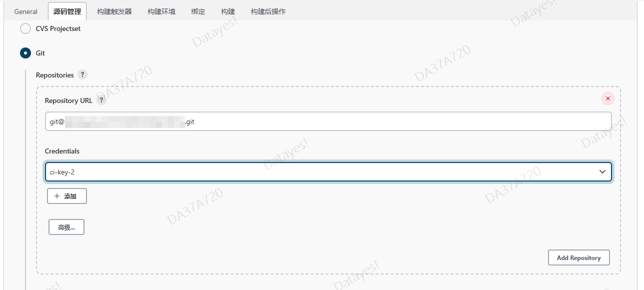 配置好了直接使用就行。Jenkins后台会自动使用这个key去配置git,拉取远程仓库(主)。